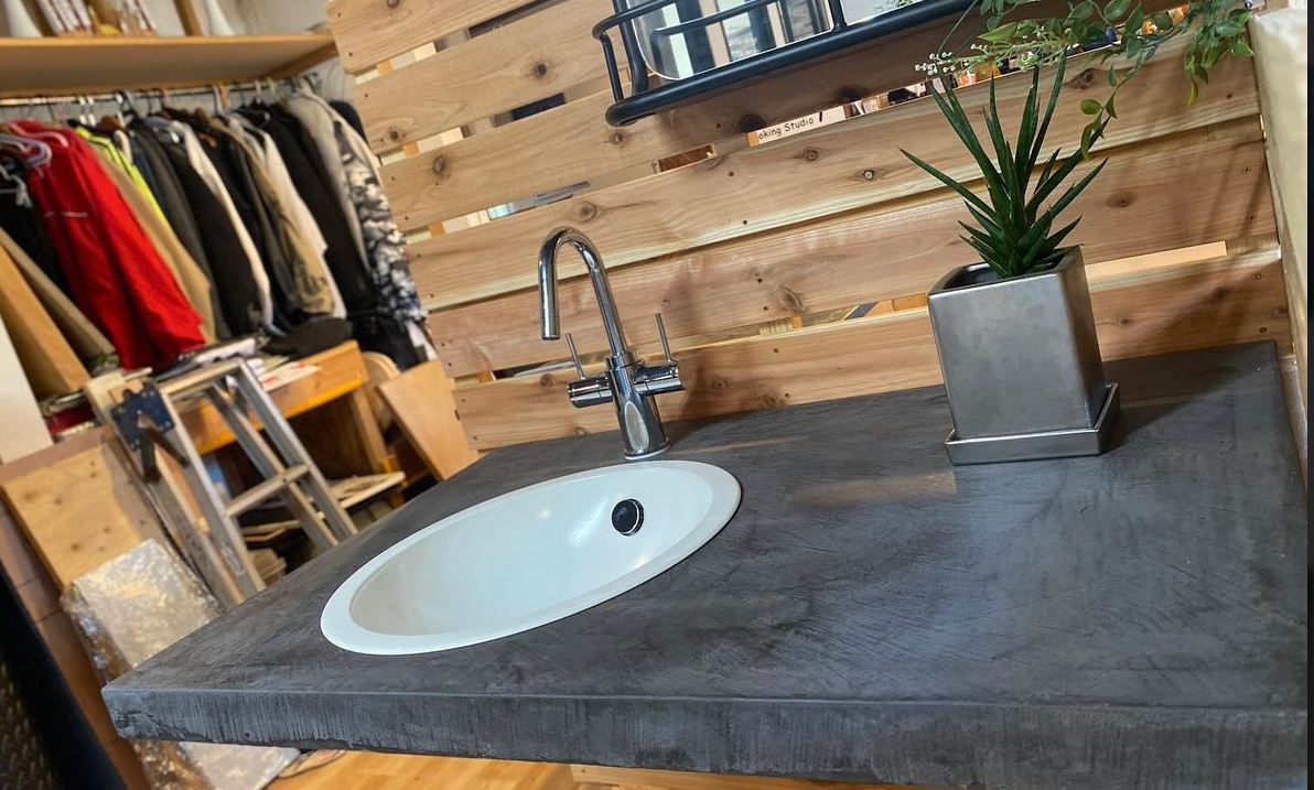 ラフで無骨な“経年の味”を、手仕事でつくる技法。 モルタル造形+エイジングならではの、時間を感じる質感です。 d works が大切にしている “素材を楽しむ空間” に相性抜群。