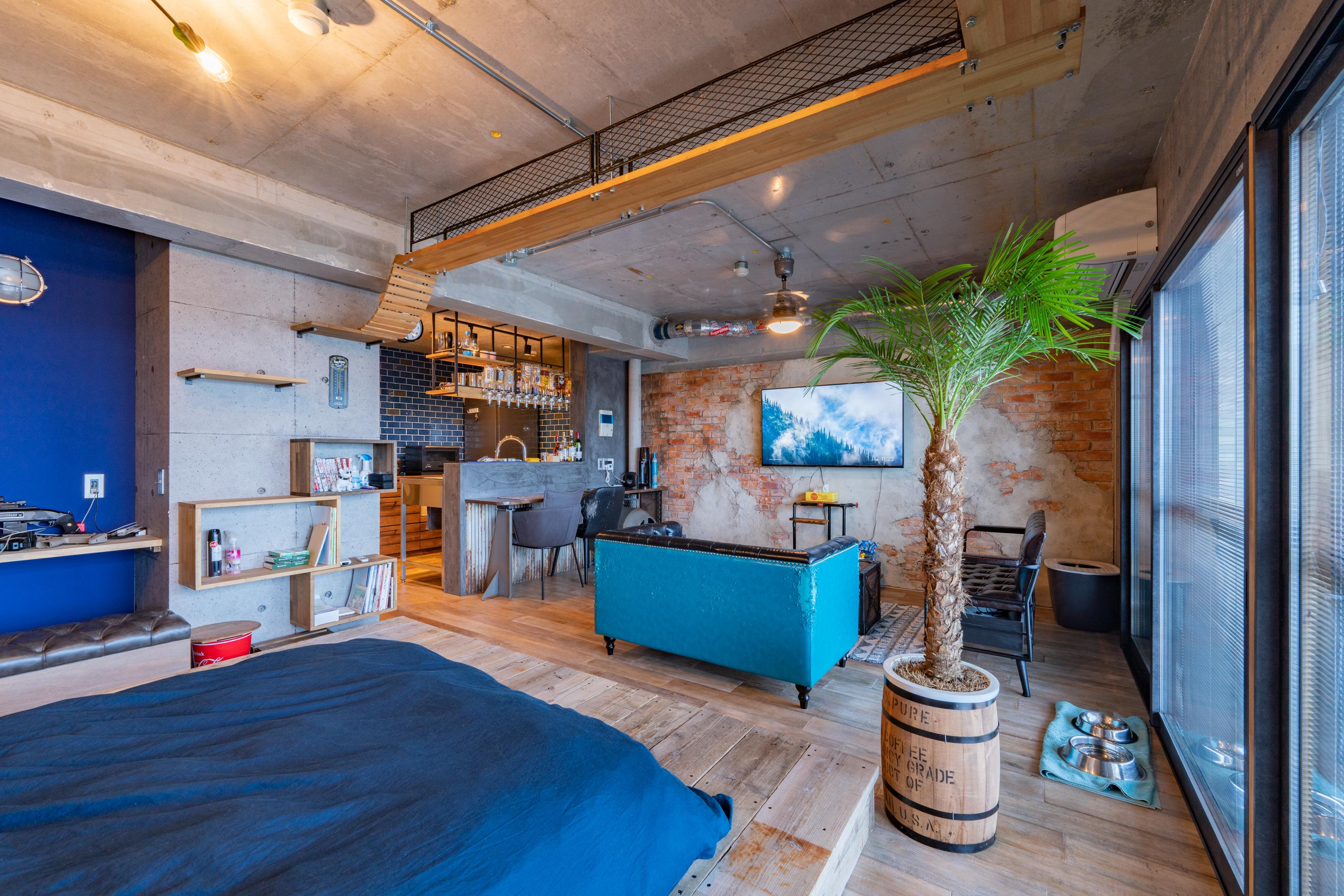 コンクリート・木・鉄。余計な装飾を削ぎ落とし、“素材の質感”をそのまま生かしたリノベーション。 暮らし×趣味×楽しむをテーマに、毎日がちょっとワクワクする空間づくりを行っています。
